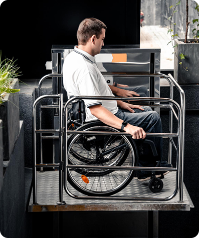 نفتخر بتقديم منصة الدرج كأحد المنتجات المبتكرة للتغلب على مشاكل صعود الدرج بالكراسي المتحركة للمقعدين حيث يعمل الجهاز على نقل المقعدين بسهولة لاعلى واسفل وبدون الحاجة الى مساعدة احد الجهاز يتميز بالمرونة وسهولة الاستخدام